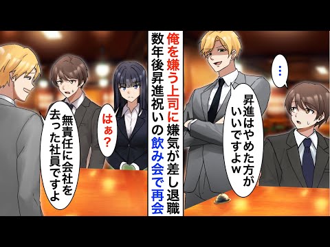 【漫画】俺を嫌う上司に嫌気が差し退職。転職先の昇進祝いの飲み | 動画まとめ