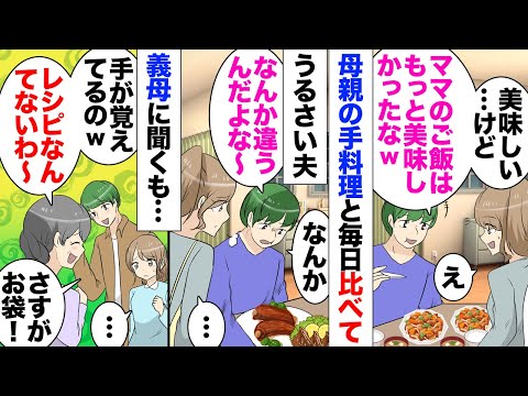 【漫画】夫「美味しいけどお袋の方が美味しい!次から味付け変え | 動画まとめ
