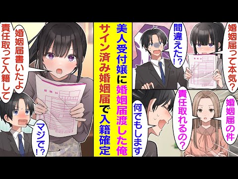 【漫画】塩対応で有名な美人受付嬢に間違えて婚姻届を渡してしま | 動画まとめ