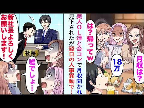 【漫画】美人OL達と合コンで月収聞かれ見下されたが翌日人事異 | 動画まとめ