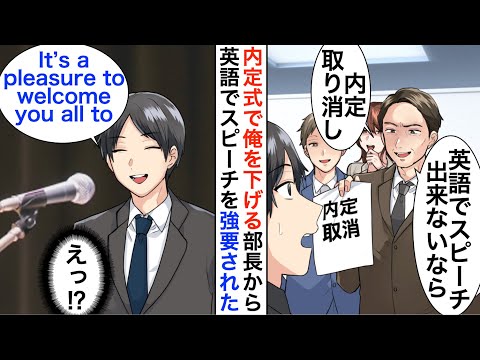 【漫画】内定式で全社員の前で俺下げする部長が英語のスピーチを | 動画まとめ