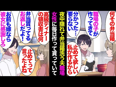 【漫画】夫が夜中にコソコソ台所で弁当箱を洗っていた「誰の弁当 | 動画まとめ