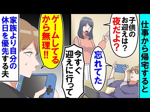 【漫画】私「子供のお迎えは?」夫「ゲームしてるから無理」家族 | 動画まとめ